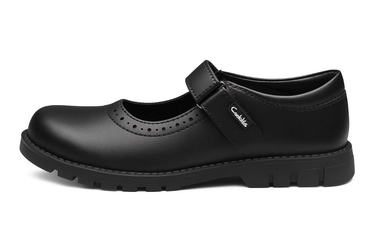 Girls’ Classic Double-Strap Black School Shoes – Durable Uniform Footwear